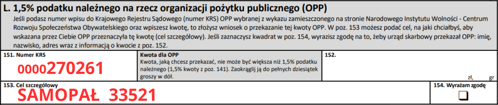 Przekazanie 1,5% podatku na Samopał